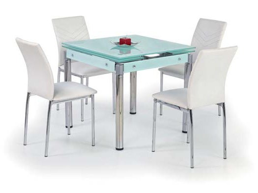 Стіл KENT HALMAR - розсувний обідній стіл польської компанії Halmar (Халмар) зі скляною стільницею. Матеріал: стільниця - скло загартоване; каркас - сталь хромована. колір: скло - білий; метал - хром.