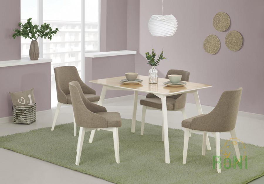 Стіл PETRUS HALMAR (бук) – красивий обідній стіл польської компанії Halmar (Халмар) з прямокутною стільницею з МДФ і шпона кольору бука. Стійкі ніжки виготовлені з масиву бука білого кольору.