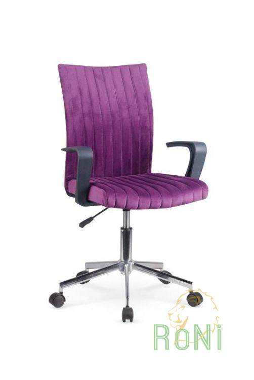 Поворотний стілець DORAL оббитий фіолетовою тканиною. Крім того, він є універсальним кольором. Тканина, з якої виготовлений стілець, є більш стійкою до механічних пошкоджень. Основний механізм дозволить вам встановити відповідну висоту сидіння для росту дитини, а додатково профільована спинка і пластикові підлокітники зроблять так, що навіть довше сидіння за партою не буде обтяжувати дитяче тіло. Крісло DORAL включає колеса, призначені для килимів.